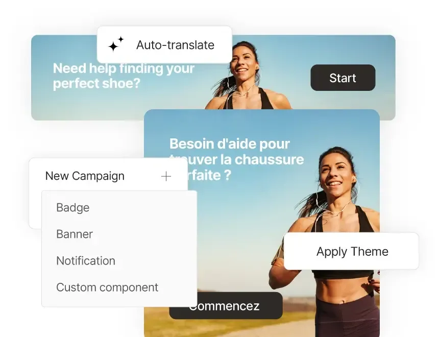 Choose from pre-built components (e.g. badges, notifications, sticky banners)